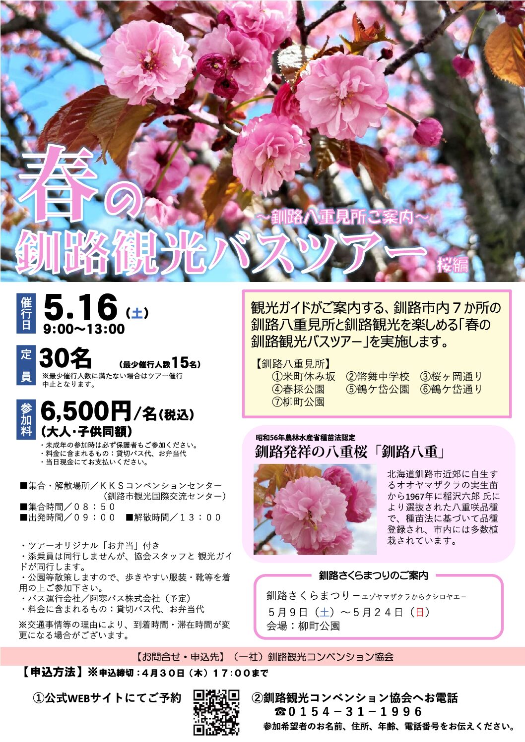 春の釧路観光バスツアー【桜編】~釧路八重見所ご案内~