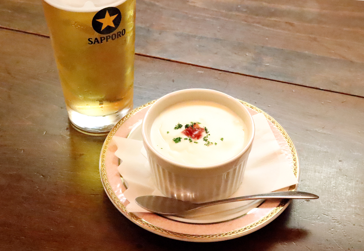 大衆居酒屋とバーのいいとこどりなレストバー。定番であり一番人気メニュー「大航海風ラザニア」は「大航海」の名にふさわしい、旅心をくすぐる逸品で、小さめサイズながら濃厚なチーズのコクとミートソースが層になって絡み合い、驚きの満足度。常連さんからリピート率が非常に高い一品でビールとの相性も抜群。船内をイメージしたおしゃれな造りの店内は、照明を落とした落ち着いた雰囲気で、カウンターとテーブル席が並び、一人飲みにもぴったり。カウンター越しに交わすマスターたちとの会話も魅力です。