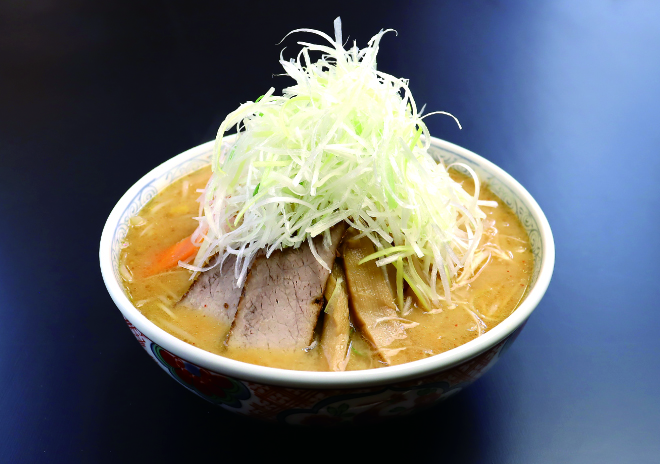 春採湖からほど近くの春採ショッピングセンター内にある『喜多の味らーめん 春採店』。開店当初から人気のみそ野菜ラーメンに山盛りのネギをトッピングした『みそ野菜軟白ねぎラーメン』はボリューミーで食べ応えのある一杯です。見た目以上にたっぷり入った野菜のうま味とシャキシャキ食感がクセになるネギ、そしてまろやかな味噌のスープと細縮れ麺との相性は抜群。