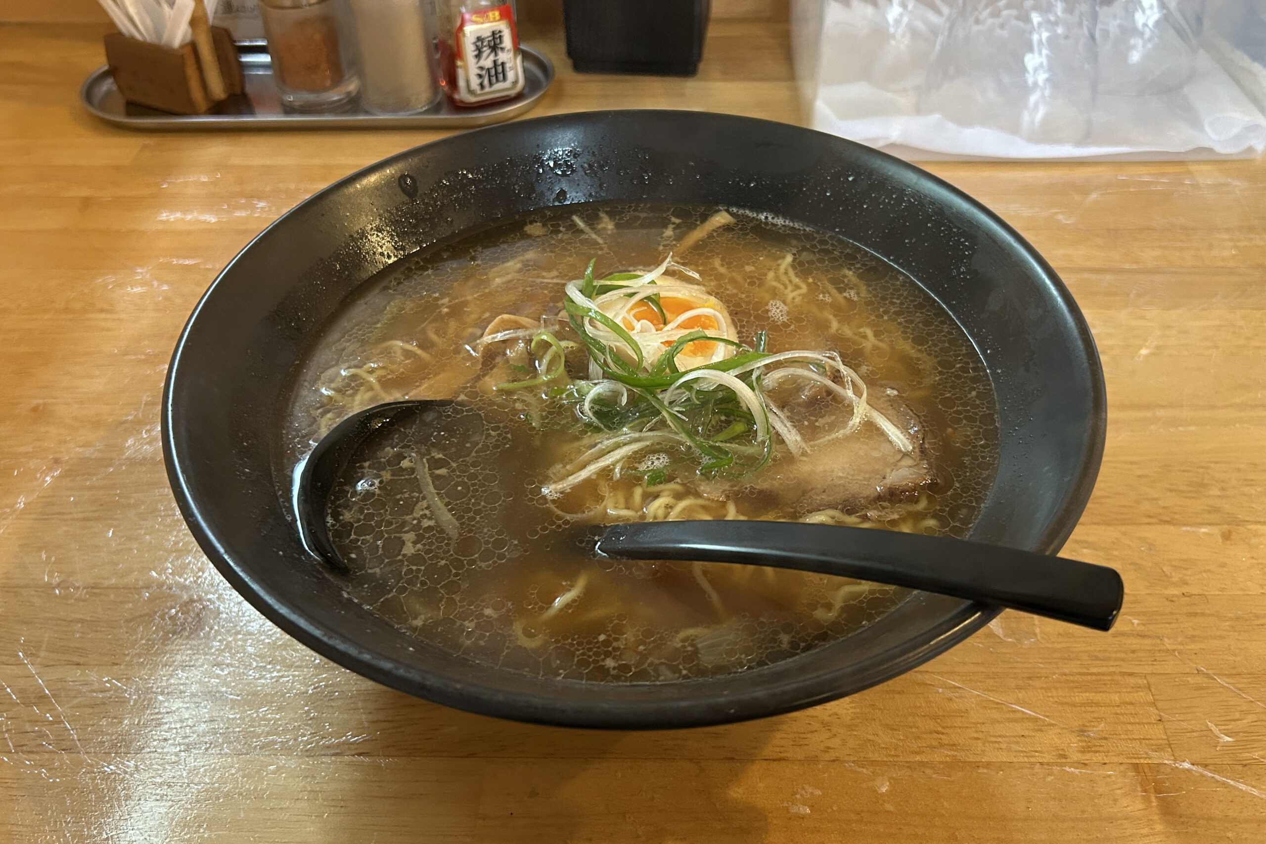 釧路では珍しく太麺の部類に入る麺が、しっかりとした味のスープとともに胃にすとんと収まる満足感は格別です。