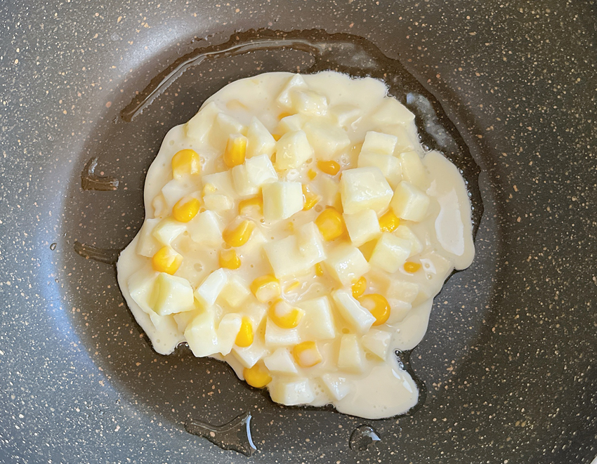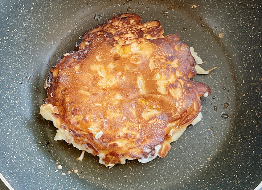 ・牛乳を溶いてぼってりさせ、ホットケーキのように2枚焼く