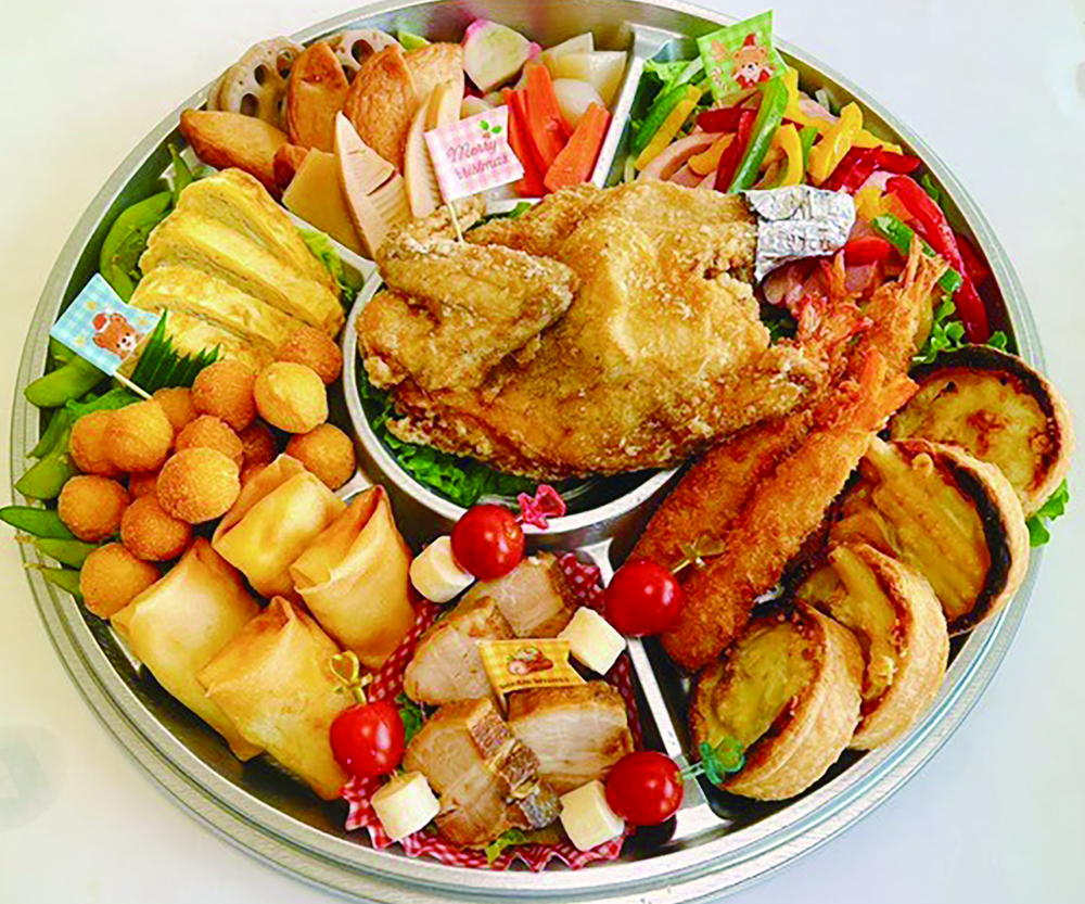 お弁当は500円から♪平日限定の日替わり弁当は、肉や魚のメインに惣菜がつき、かわいい容器も好評。通常オードブルは通年対応で、11月からはクリスマスオードブルの予約もスタート。3人前4,500円・5人前7,300円でおうちの食卓を彩ってくれます。(ハポライター:下川部愛梨)