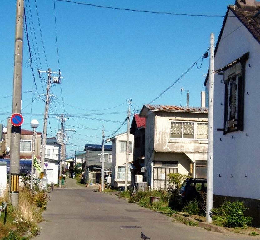 洲崎通りと呼ばれた大町5丁目から7丁目は、昭和初期までは釧路の中心市街地として釧路の経済を支えた通りです。今は舗装道路沿いの住宅の中に鉄工場、商店、銭湯がある静かな住宅街ですが、一歩裏通りに入ると、子どものころに仲間と走り回り、おじさん、おばさんに怒られた小路、袋小路が残っている住宅街です。