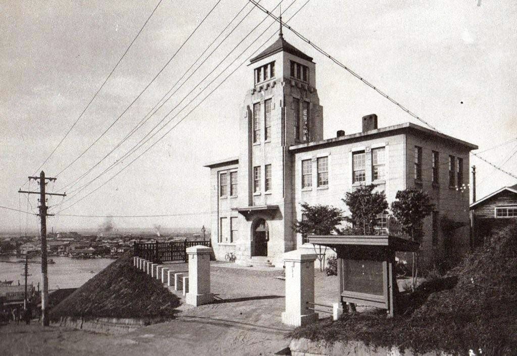 釧路の街を一望している建物の写真は、現在の幣舞公園に大正15年12月に新築された、昭和7年頃の釧路警察署です。幣舞町の様子について釧路郷土史考では、釧路市の中央に位し高地なるを以て官庁所在地に適す。現在釧路市役所、市立公会堂、簡易図書館、市立病院、釧路土木事務所、釧路税務署、釧路測候所などがある、と幣舞町の官庁街を紹介しています。
