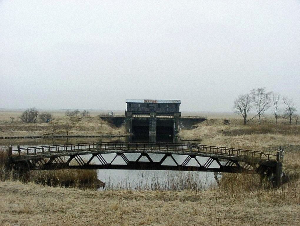 釧路川の治水工事は大正10年に始められ昭和6年9月に、新釧路川へ通水が開始されますが、湿原の泥炭を掘削する水路開削工事は難工事が続き、これに挑戦した先人の苦闘が新水路を完成させています。新水路の完成によりその後の釧路には洪水の記録はありません。岩保木水門は釧路川の自然の猛威と釧路川の治水に挑戦した先人の活力を記憶しています。