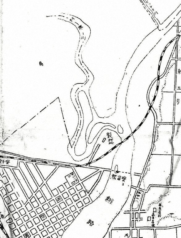 明治30年ごろの地図を見ますと、阿寒川が激しく蛇行しながら釧路川に合流し、川口には中州があり、阿寒川は暴れ川のようです。釧路川右岸の古川町の命名について、昭和7年の字地番改正の中で、旧名阿寒太(夷名阿寒川の川口の義)は、旧阿寒川の廃川があるのに因み、古川町と命名すると記載され、昭和初期にも阿寒川蛇行の名残が見られたようです。