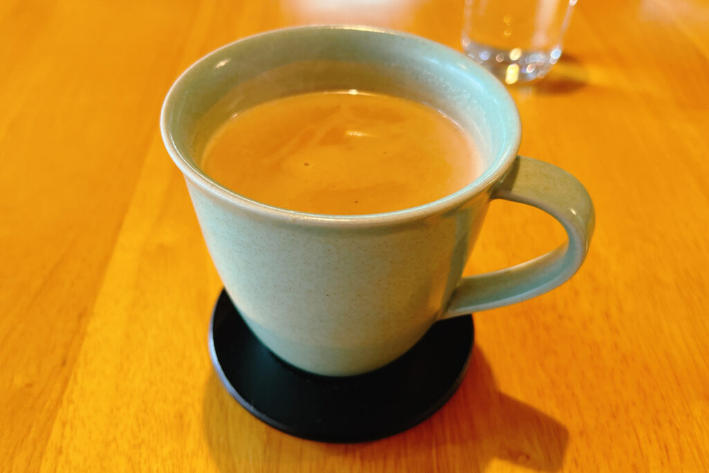 コーヒーの香りに心を揺さぶられながらも、人気のチャイを頼んでみました。大きいカップにたっぷりと注がれたチャイからは、複雑なスパイスの香りが湯気と共に立ちのぼっています。ほんのり甘く、思ったよりもスパイシー!これはクセになりますな。