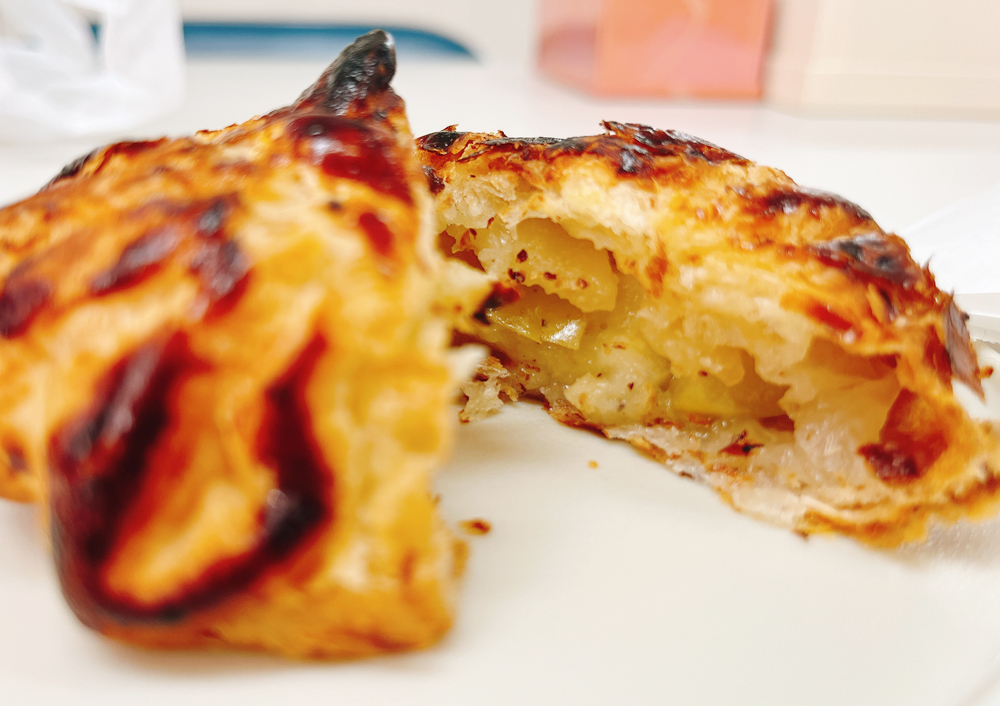 まだほかほかのアップルパイ、自分の分しか買っていないのでこっそりいただきます。