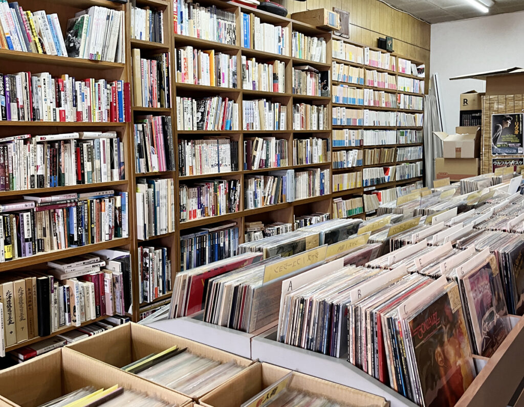 店内に足を踏み入れると、まず目に入るのは所狭しと並ぶレコードと本。思わず足が止まります。自分だけの宝探しに没頭するのもいいですね。