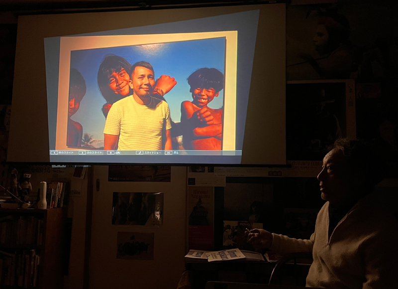 今回は、ブラジルで開催されている巡回写真展の現地イベントに参加してきたばかりの長倉さんが、その体験をスライドを交えて報告しました。長旅の疲れもどこへやら、話し始めると止まらない様子です。